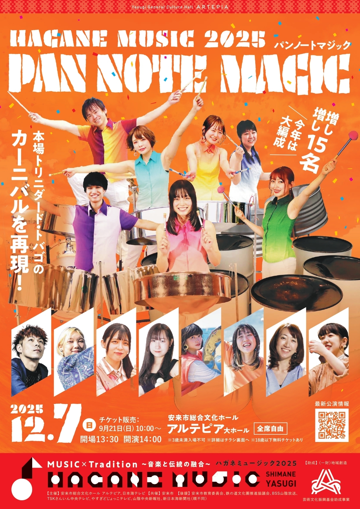 | 出演者 | 【1部 PAN NOTE MAGIC】 宗像 桃子(Tenor Pan)・宮本 真居子(Tenor Pan)・山脇 妃見子(D Tenor Pan)・川﨑 友仁(D.Second Pan)・福本奏音(3Cello Pan)・新崎 比奈子(4Bass Pan)・林 啓太(Dr) |
