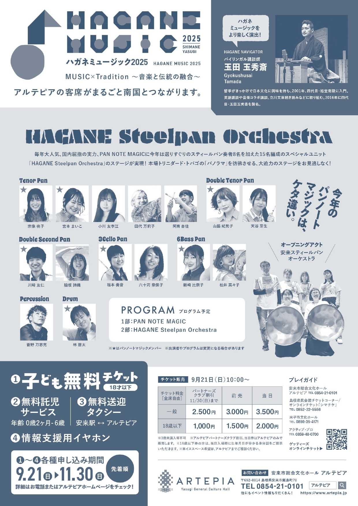 | 予約 | 安来市総合文化ホール アルテピア 0854-21-0101 |